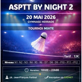 Le club de l’ASPTT Strasbourg Badminton a le plaisir de vous inviter à son Tournoi du Double 11, qui se tiendra le lundi 11...