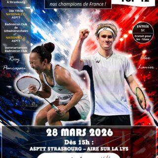 Le club de l’ASPTT Strasbourg Badminton a le plaisir de vous inviter à son Tournoi du Double 11, qui se tiendra le lundi 11...